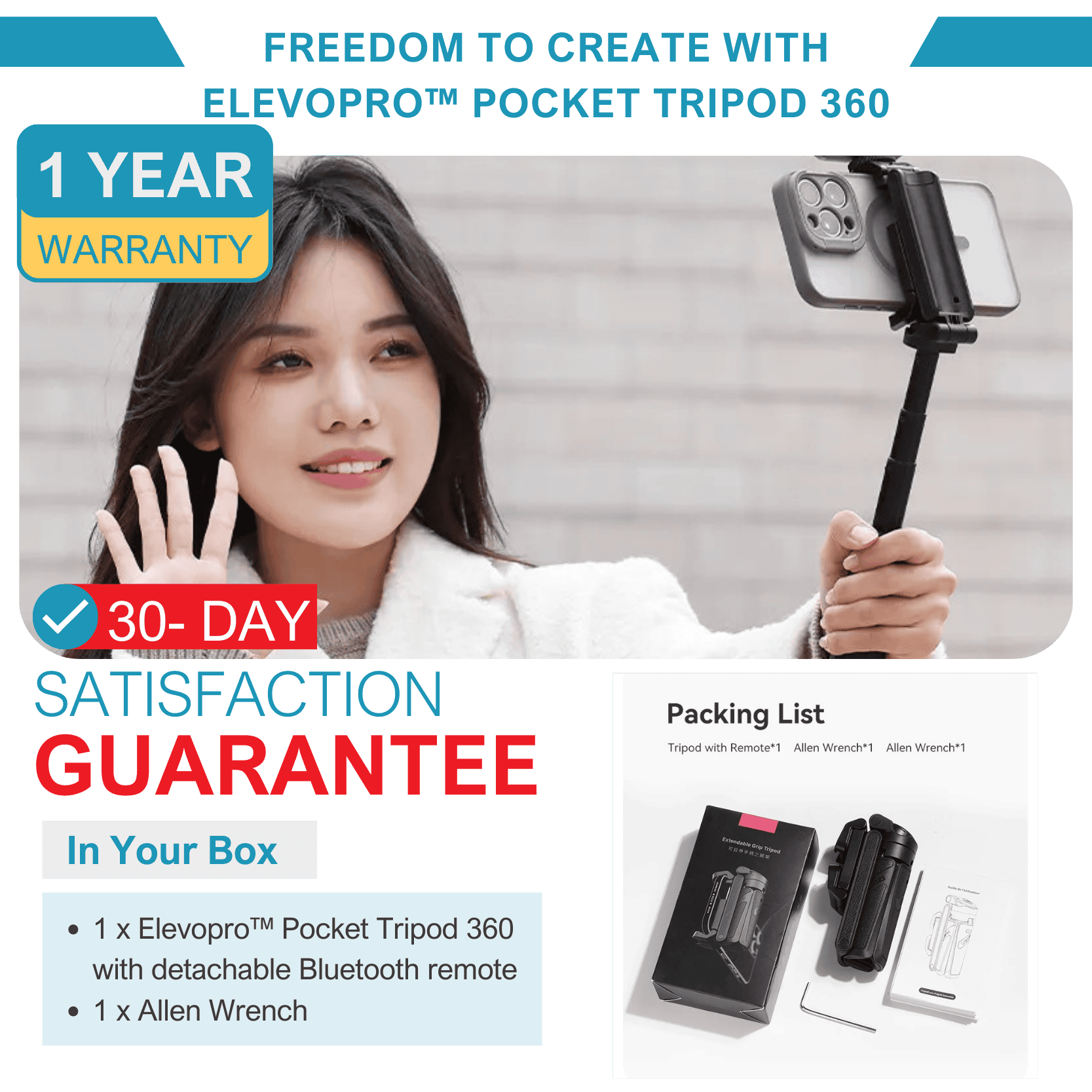 Choose Elevopro™ Pocket Tripod 360 for a risk-free and reliable experience in mobile photography.